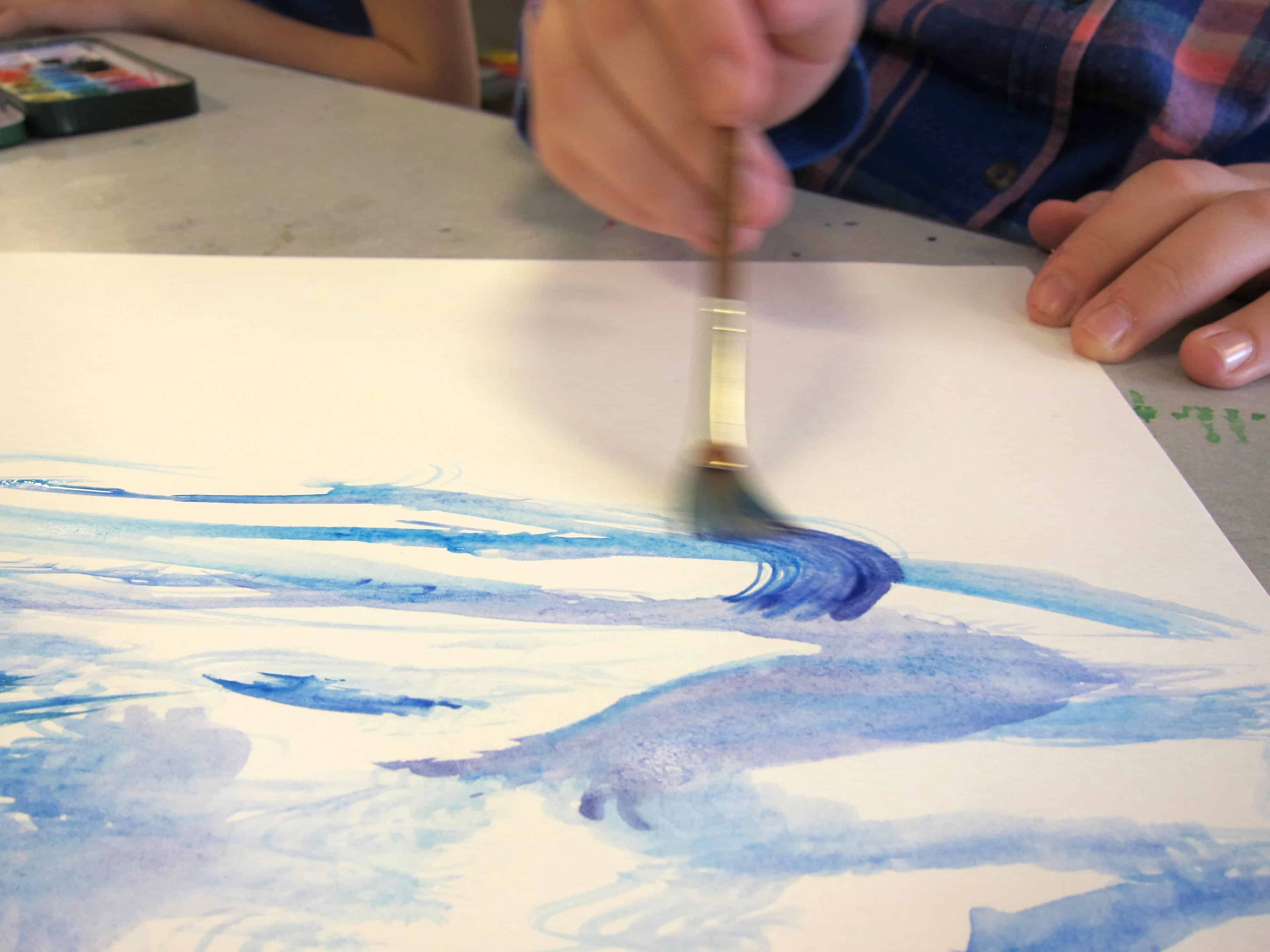 Hands down, my favorite tool for watercolor painting is the fan brush. Buy fan brushes in a variety of sizes. If your budget is small, start by buying a small assortment every year. They are indispensable for creating texture!