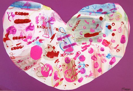 These were made by my kindergartners. I have seen a lot of gorgeous heart pictures around the internet lately. None of the techniques we used to make these are brand-new but maybe they are new-to-you!