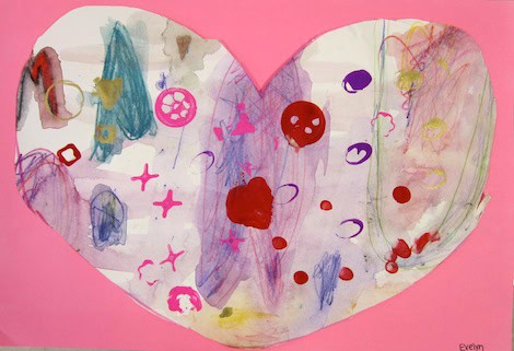- A large heart was traced on to their picture (when dry). Then, these were cut out.