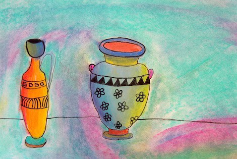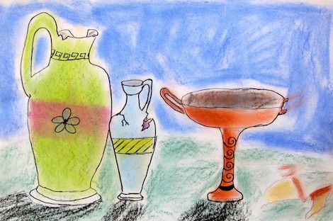 Here is a lesson on drawing Greek vases that I teach to my 4th and 5th graders. We start by reading the Scholastic Art issue about Greek pottery. It was from several years ago. If you are able to, I highly recommend subscribing each year and saving a class set from each issue. I don’t use every issue, but I find that there are enough issues that we repeatedly use to make the cost worthwhile.