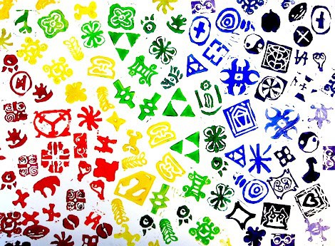 My 5th and 6th grade students studied Africa and the African Adinkra stamped cloths. I showed them a slide show of images.