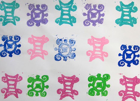 Examples of Adinkra symbols were shown for inspiration. Check out my African Adinkra Pinterest board for handouts of symbols. The kids could use these ideas and embellish upon them or come up with their own symbol based on some of these ideas.