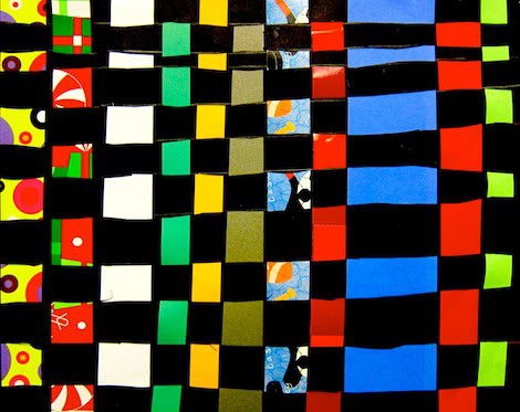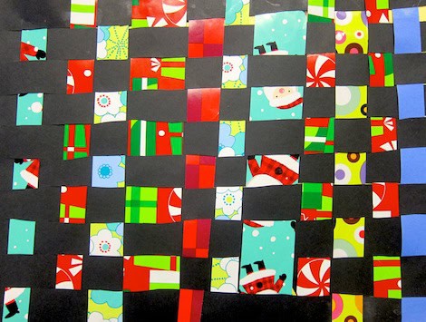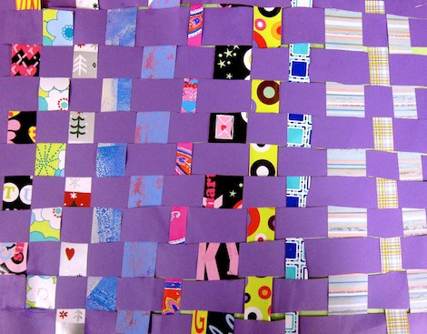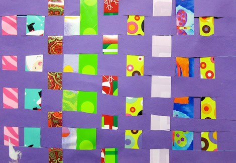 We use colored strips, scrapbook paper and wrapping paper. Here is a paper weaving tutorial.